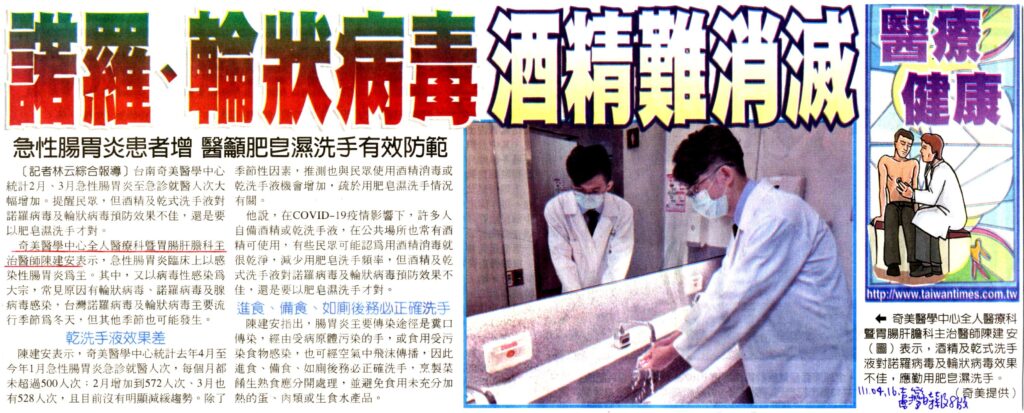 ~ 感謝媒體重視腸胃炎這個議題與採訪報導,乾洗手很對付Covid-19等病原體重要,濕洗手才能有效對付病毒性腸胃炎等的重要性也不容忽視。